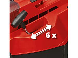 The cutting height can be individually adjusted to the user's wishes and the lawn conditions, with 6 heights from 25-75 mm.