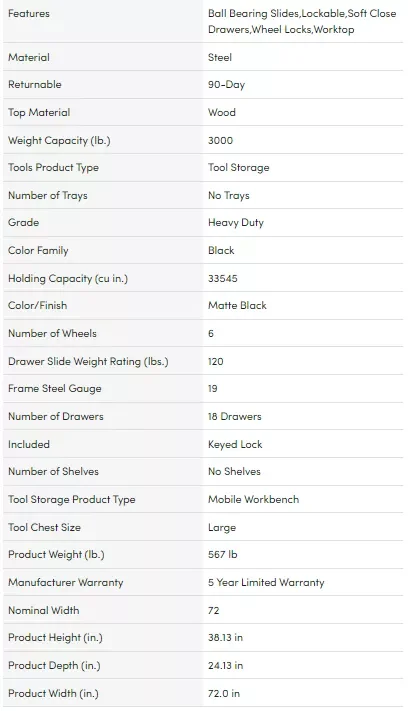 When you buy a Heavy-Duty 72 in. W 18-Drawer, Deep Tool Chest Mobile Workbench in Matte Black with Adjustable-Height Hardwood Top online from Our Store, we make it as easy as possible for you to find out when your product will be delivered.If you have any questions about your purchase or any other product for sale, our customer service representatives are available to help.Whether you just want to buy a or shop for your entire home, Our Store has a zillion things home.