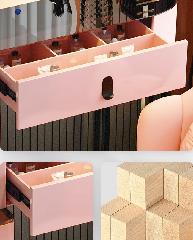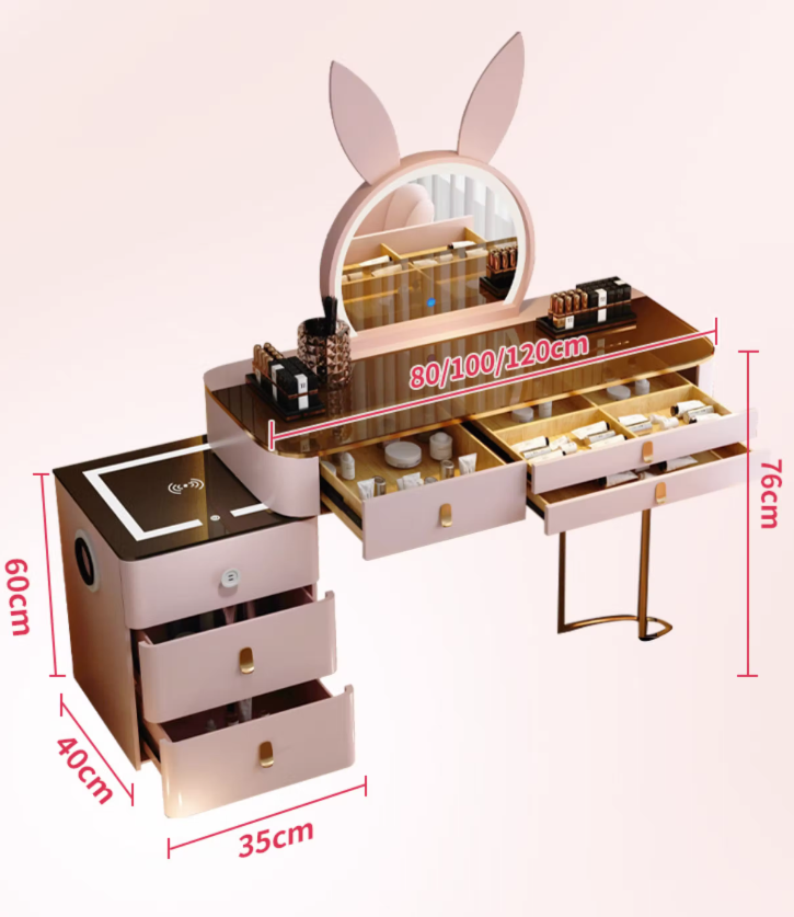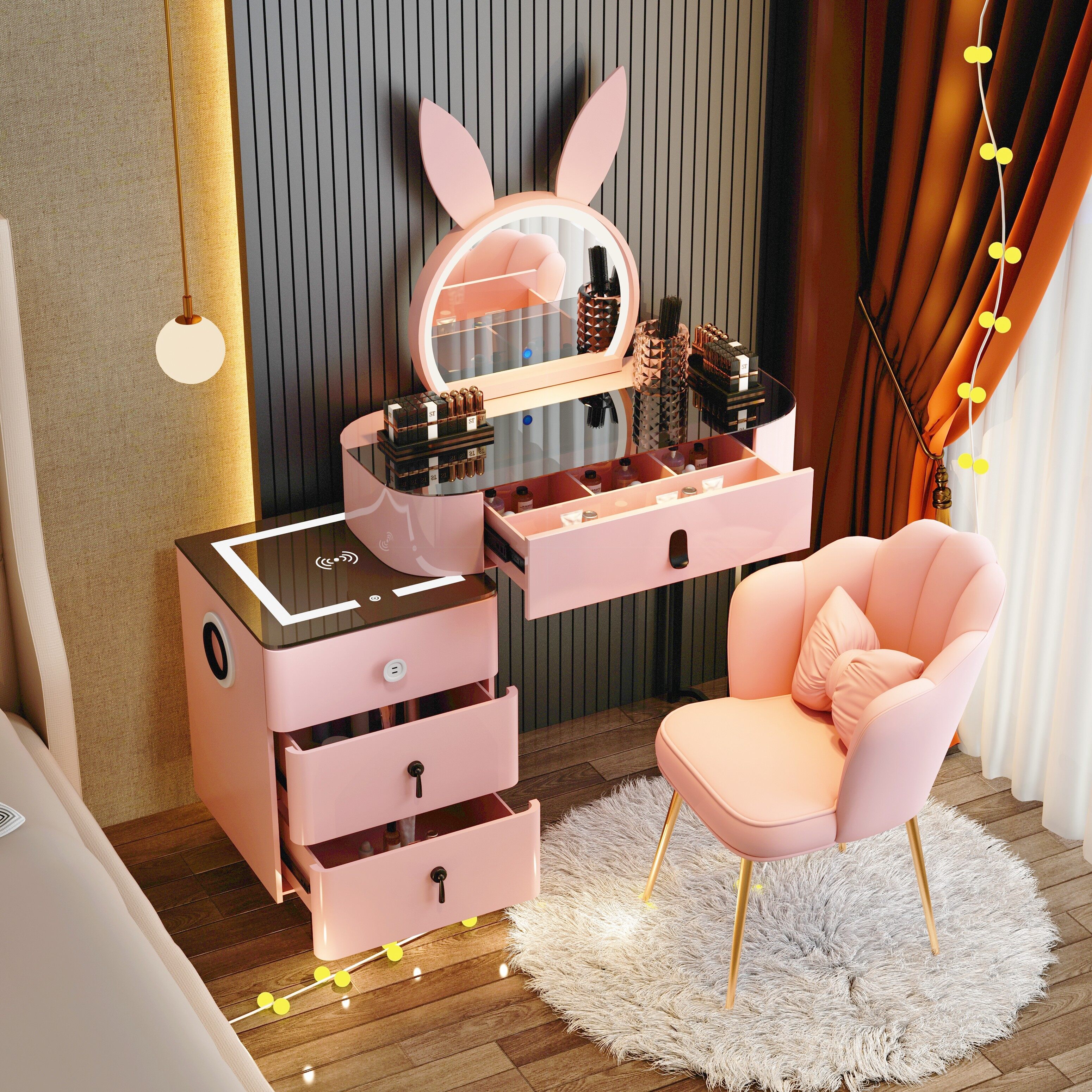 Beauty is a compulsory course for every girl. Imagine your own personal styling area where everything you need is within reach.Our stylish vanity desk this dream come true.Intelligent light mirror HD flat mirror, real and natural imaging.